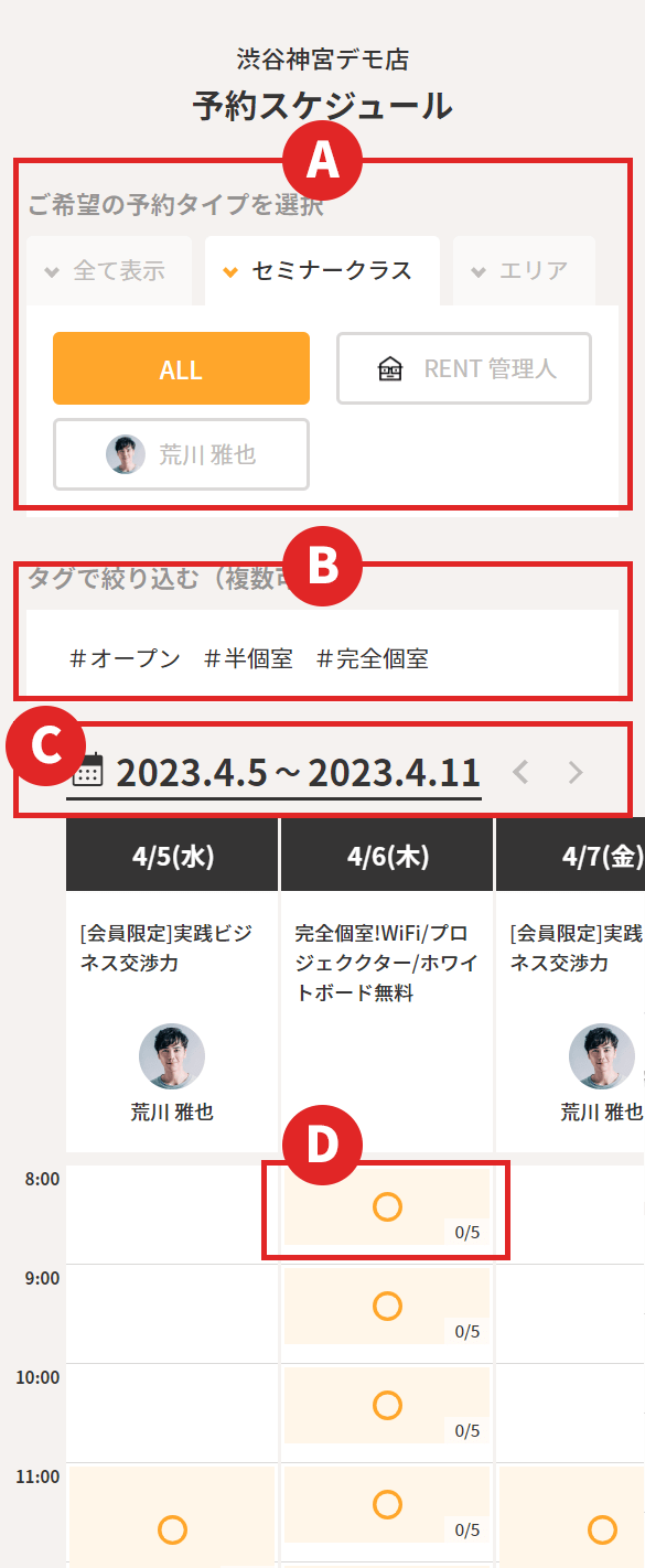 絞り込み表示をする場合は希望の予約タイプをタップ