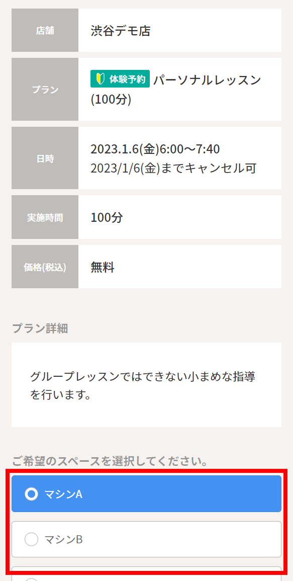 打席(場所)の選択がある場合はご希望の打席(場所)を選択してください。
